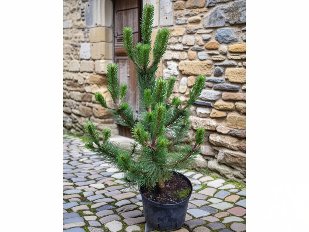 Borovica s pravidelným usporiadaním konárov ktoré pripomínajú araukáriu. Ihličie je typické pre borovicu čiernu - tuhé, silné, tmavozelené,