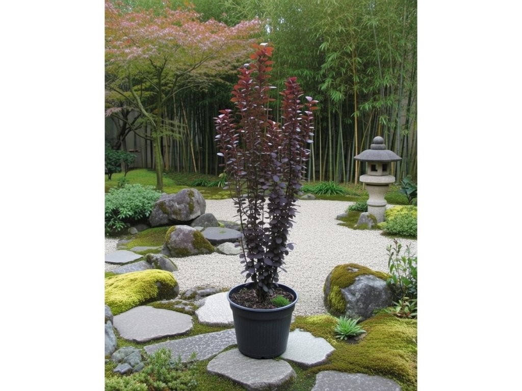 Pomaly rastúci opadavý ker. Výška dospelého kríka je cca 1-1,5m. Listy sú tmavo fialovo-červené, pomerne veľké, husto pokrývajúce konáriky. Kvitne v máji a má podlhovasté dekoratívne plody, ktoré dlho zostávajú na kríku. Dobre znáša mestské prostredie, je odolný voči nízkym teplotám. Pestuje sa na slnečných polohách alebo v čiastočnom tieni. Nie je náročný na pôdu. Používa v jednoduchých a skupinových výsadbách, je vhodný do nízkych živých plotov, vytvára husté tŕnisté nepreniknuteľné ploty. Taktiež je vhodný na pestovanie v kvetináčoch..