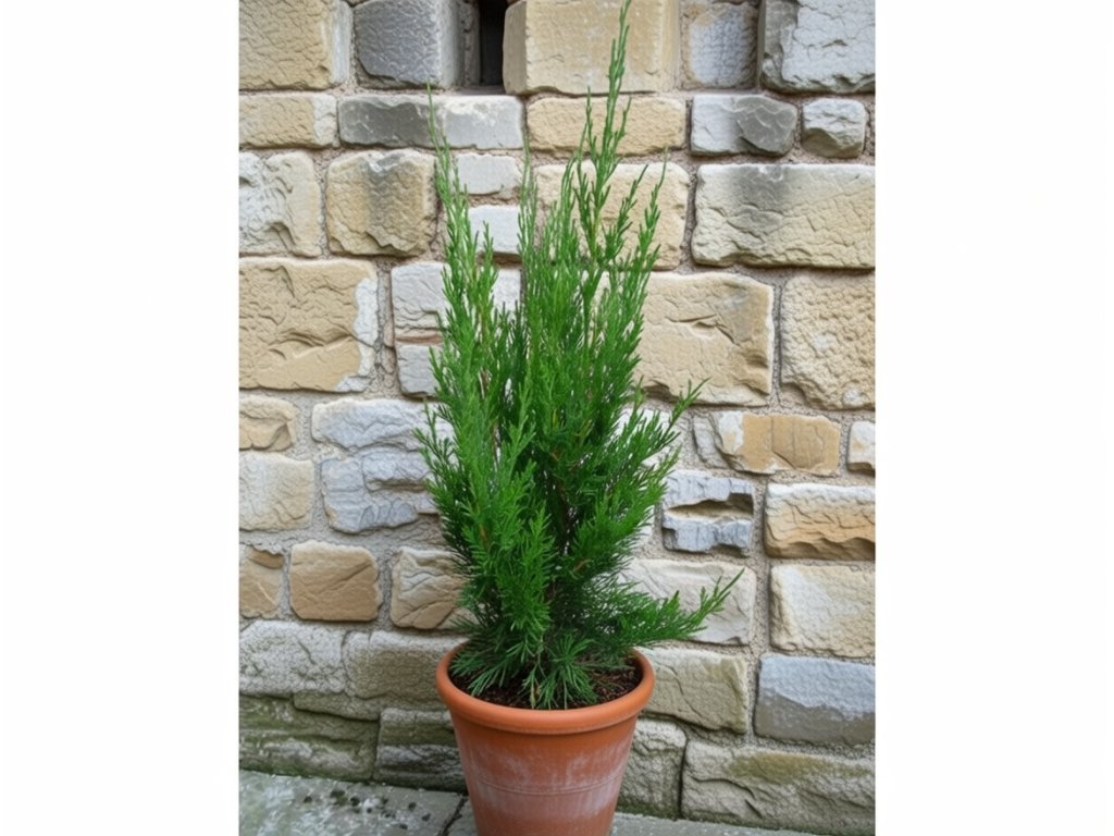 Stĺpovitý tvar, vetvičky sú tmavo - intenzívne zelené, krátke, valcovité, jemné na dotyk