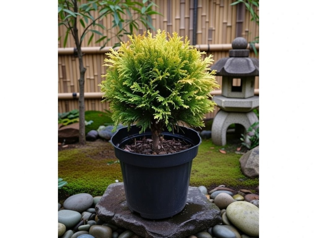 zlato - žltej farby. Pomaly rastúci kultivar.