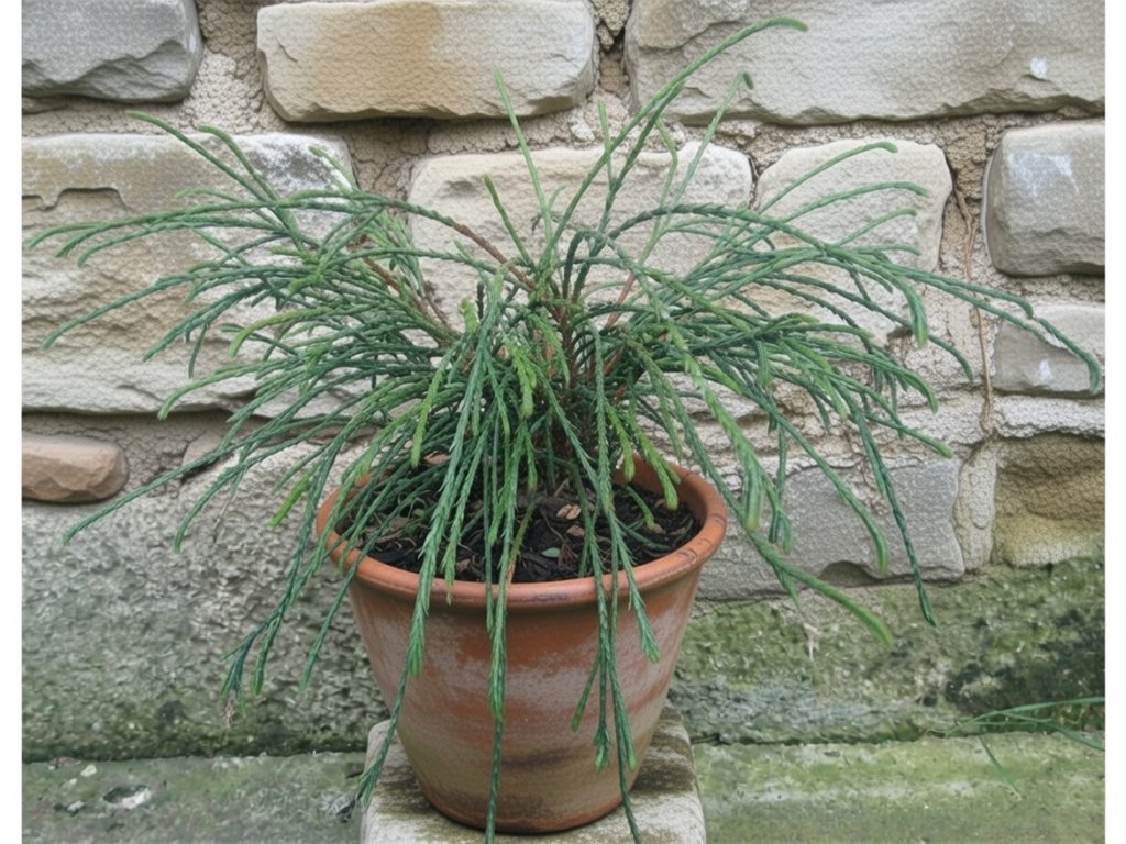 Krovitý tvar, vetvičky sú povrázkovité, sviežo - zelenej